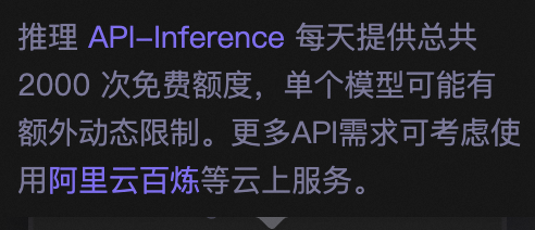 在 魔搭社区注册账号,并绑定阿里云账号,成功后每天有 2000 次免费调用。