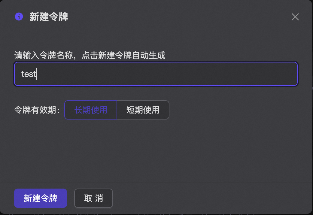 在新建令牌中输入令牌名,可以随便输,输完后点击新建令牌就创建好了