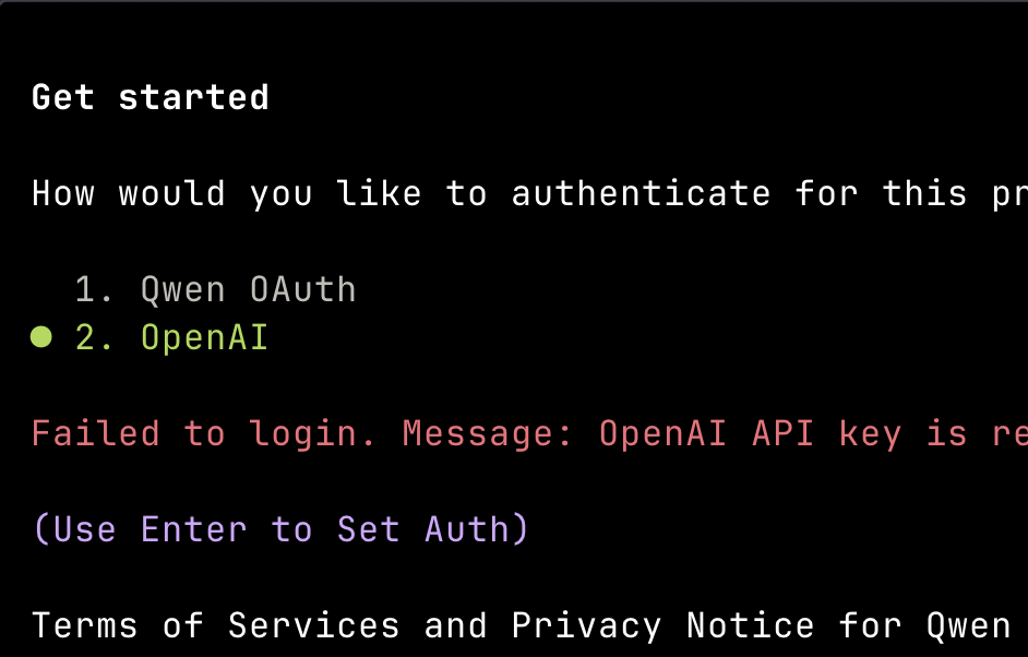 Qwen OAuth 不是我们这次使用的方式,还需要额外注册账号,感兴趣的可以自行了解。